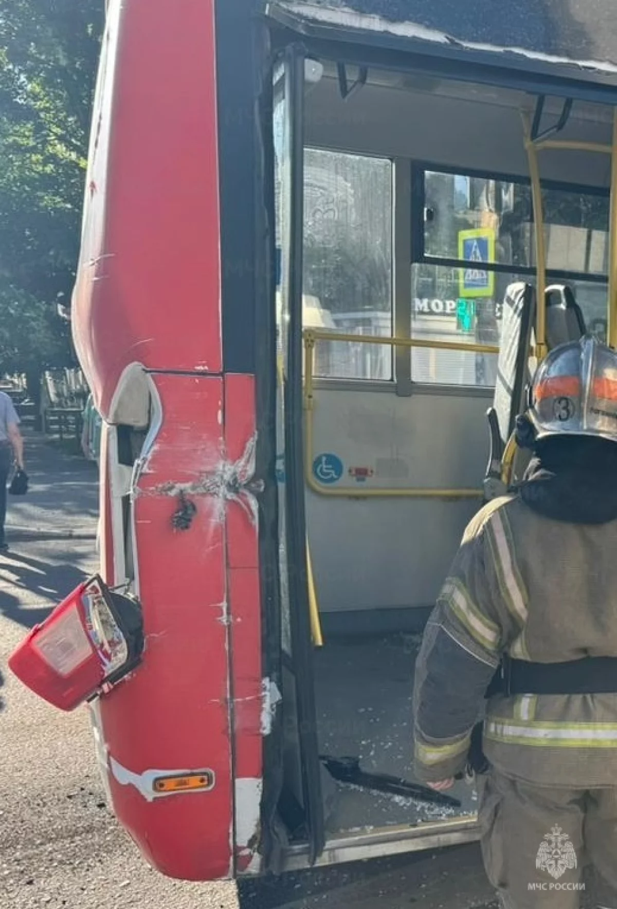 Около 7:10 там столкнулись туристический автобус «Ютонг» и рейсовый красный ПАЗ.