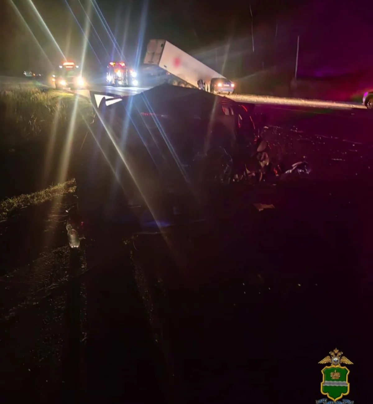 От удара KIA вынесло на встречную полосу, где машина лоб в лоб столкнулась с грузовиком MAN с полуприцепом. После этого фура съехала в кювет.