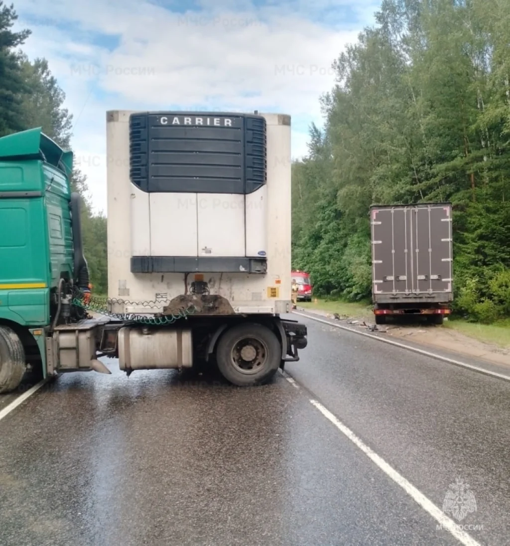 По предварительным данным ГИБДД, 30-летний водитель КамАЗа не справился с управлением, выехал на встречную полосу и столкнулся с грузовиком Mercedes Actros.