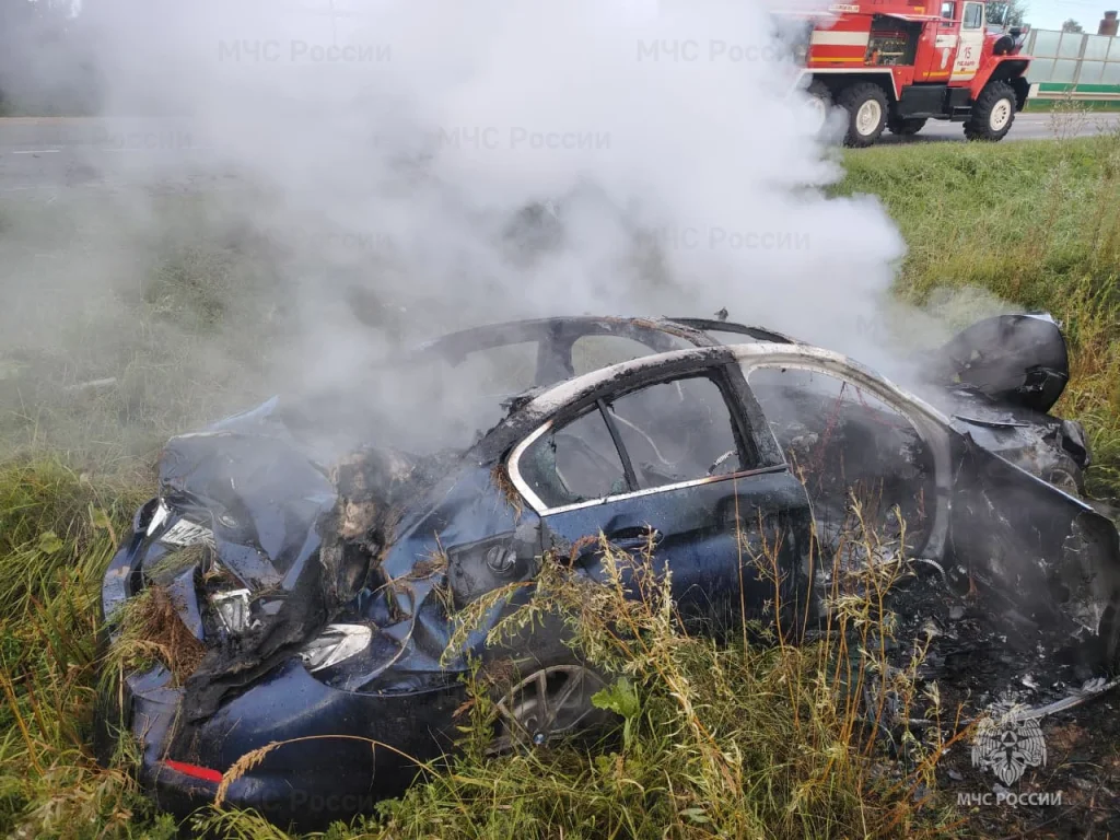 В Калужской области перевернулся и сгорел автомобиль BMW
