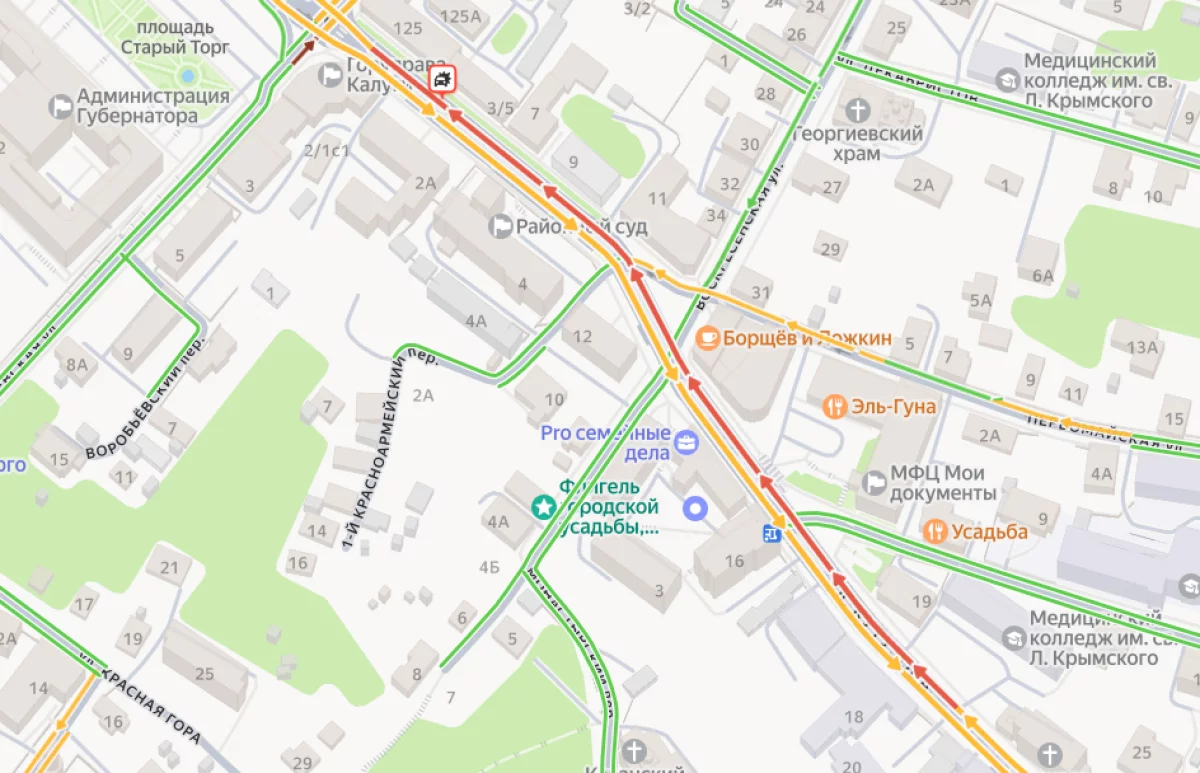 Утром в четверг, 28 августа, движение затруднено на участке между улицей Луначарского и площадью Старый Торг.