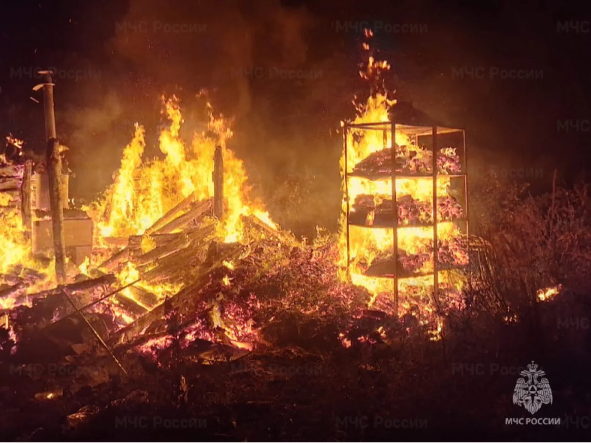 Огнем полностью уничтожено деревянное здание, расположенное у частного дома на улице Весенней.