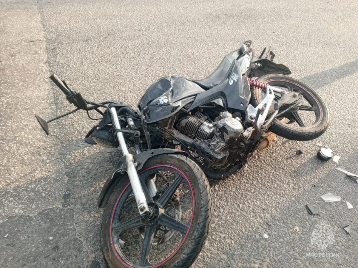 По предварительной информации спасателей, около 7 утра мотоцикл «Ирбис» столкнулся с легковым автомобилем «Лада Гранта».