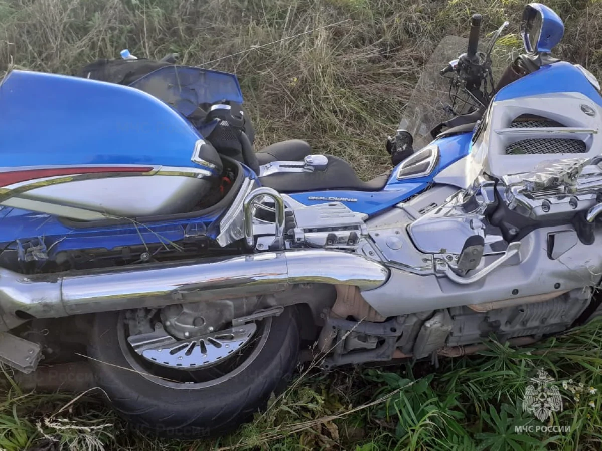 По предварительной информации, байкер на «Хонде» не справился с управлением и съехал в кювет.