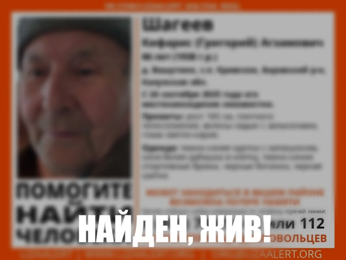 Утром в четверг, 25 сентября, поисково-спасательный отряд «ЛизаАлерт Калуга» сообщил об обнаружении 86-летнего Кифариса Шагеева. Пенсионер жив.