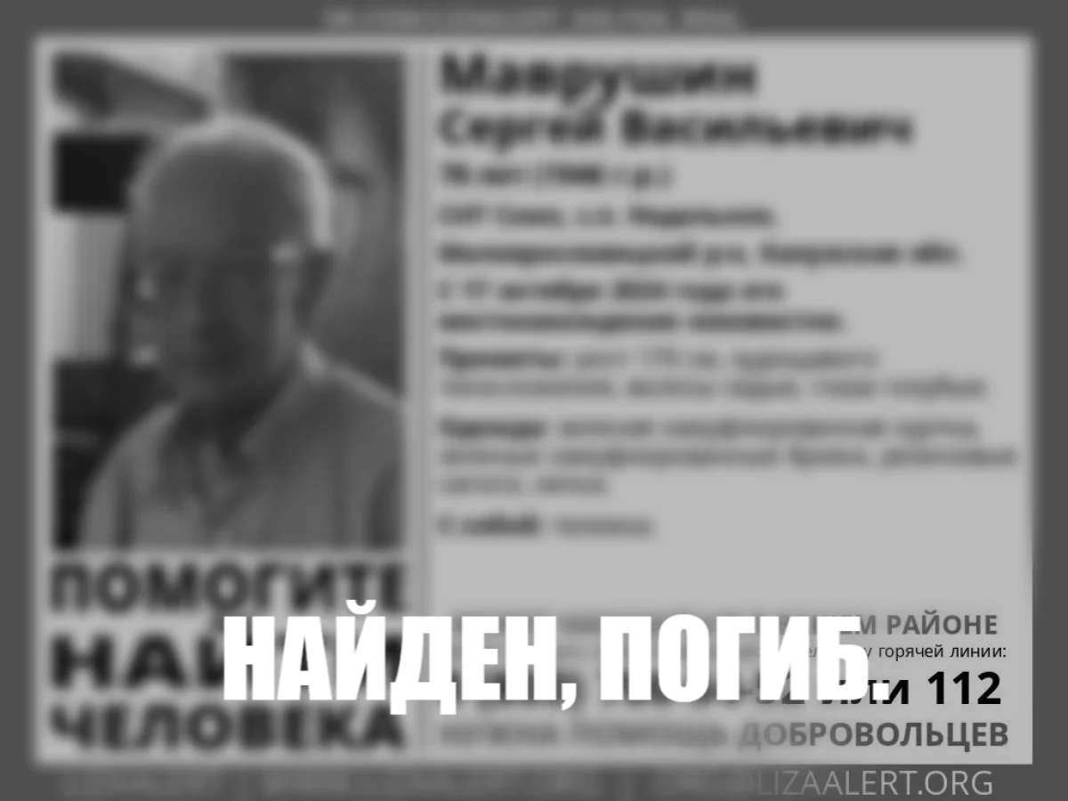О судьбе 78-летнего Сергея Маврушина ничего не было известно с середины октября 2024 года.