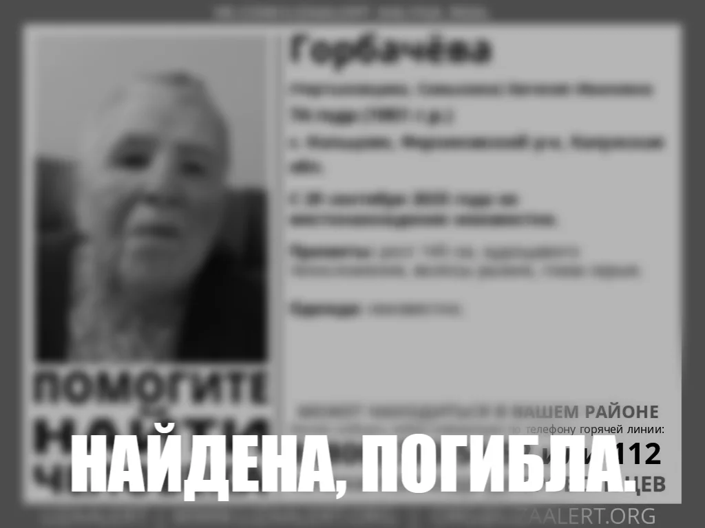 Вечером в четверг, 2 октября, поисково-спасательный отряд «ЛизаАлерт Калуга» сообщил о завершении поисков 74-летней Евгении Горбачевой.