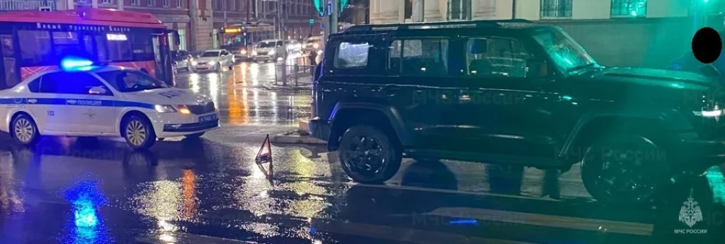 По предварительной информации, водитель автомобиля «Тэнк» двигался со стороны Правого берега и на перекрестке с улицей Королева сбил человека на переходе.
