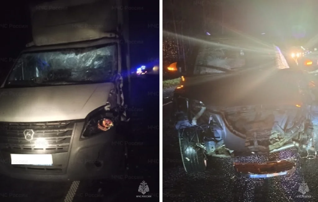 50-летний водитель грузовой «Газели» ехал по трассе. Около 19:35 ему под машины бросился лось. После этого грузовик отбросило на встречку под легковой «Лифан».