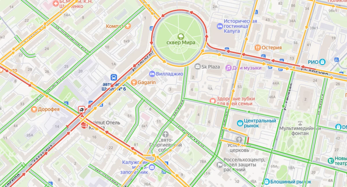 По сообщениям очевидцев, по Гагарина, скверу Мира и Кирова затор растянулся уже до перекрестка с улицей Герцена.