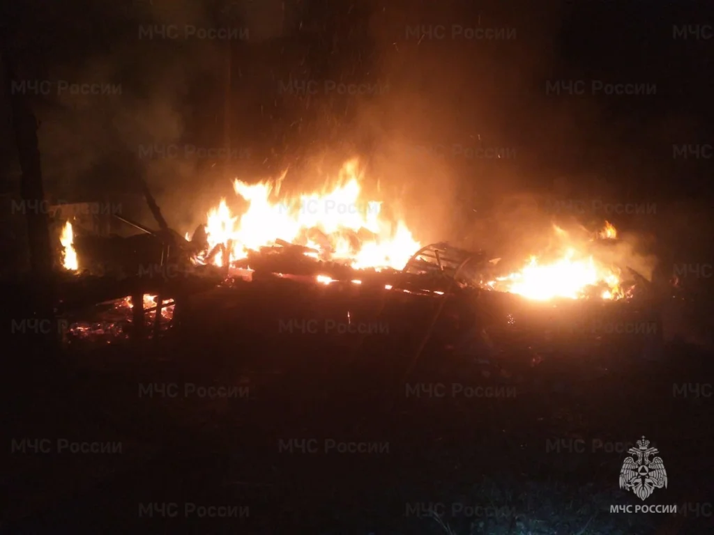 Огнем уничтожена деревянная постройка на улице Солнечной.