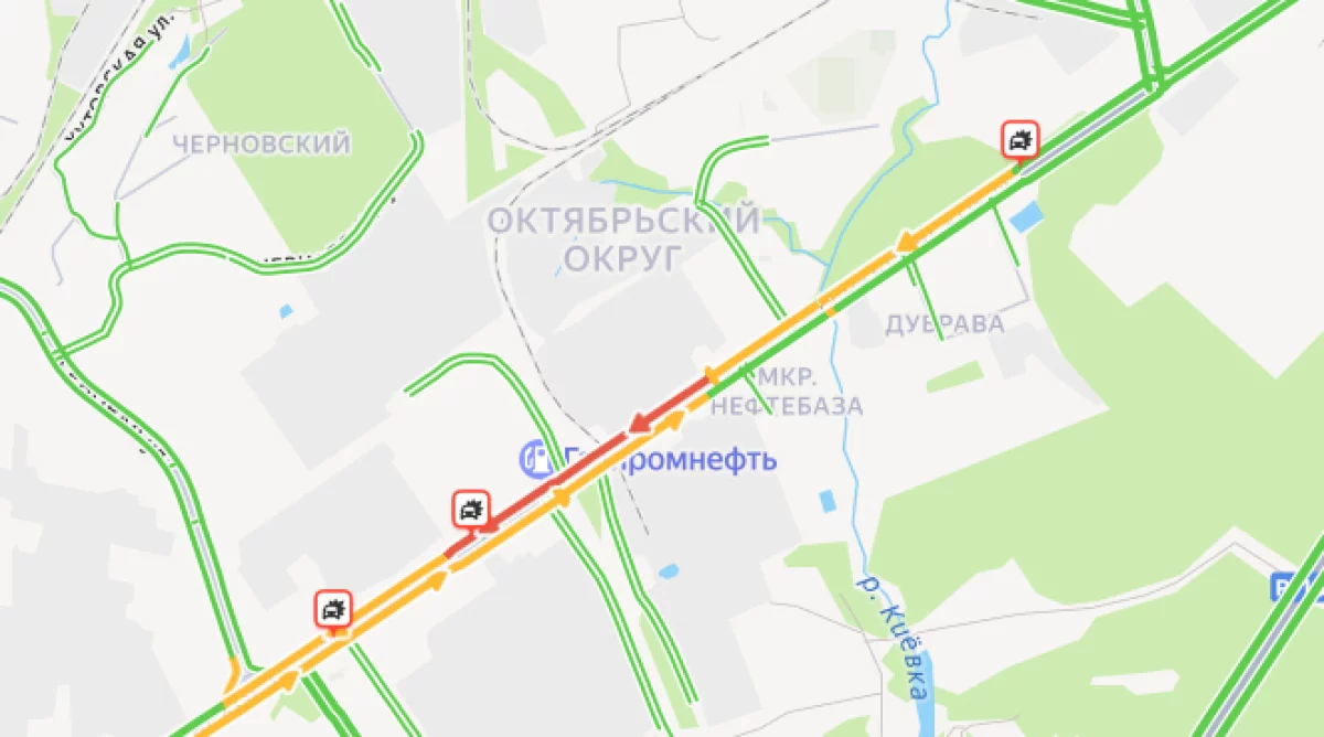 Движение в сторону центра затруднено на участке от Дубравы до поворота на Зерновую.