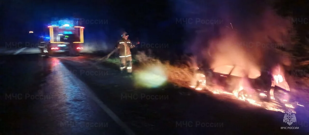 Легковушка вспыхнула примерно в 3:30 в субботу, 25 октября, в районе поворота на город Киров.