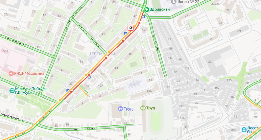 Пробка со стороны центра растянулась уже примерно на 500 метров.
