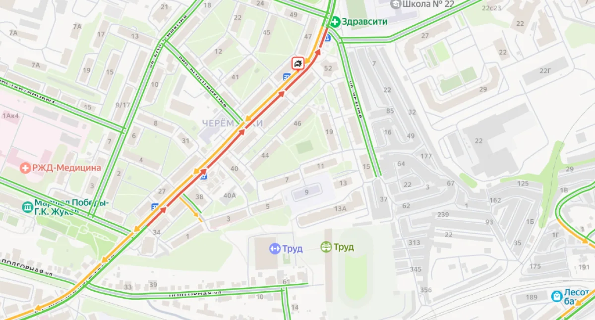 Проехать в сторону площади Маяковского можно только по встречной полосе.