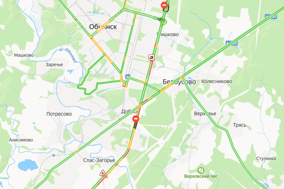 Очевидцы сообщают о дорожных работах, а также о ДТП, которое произошло в черте Обнинска.