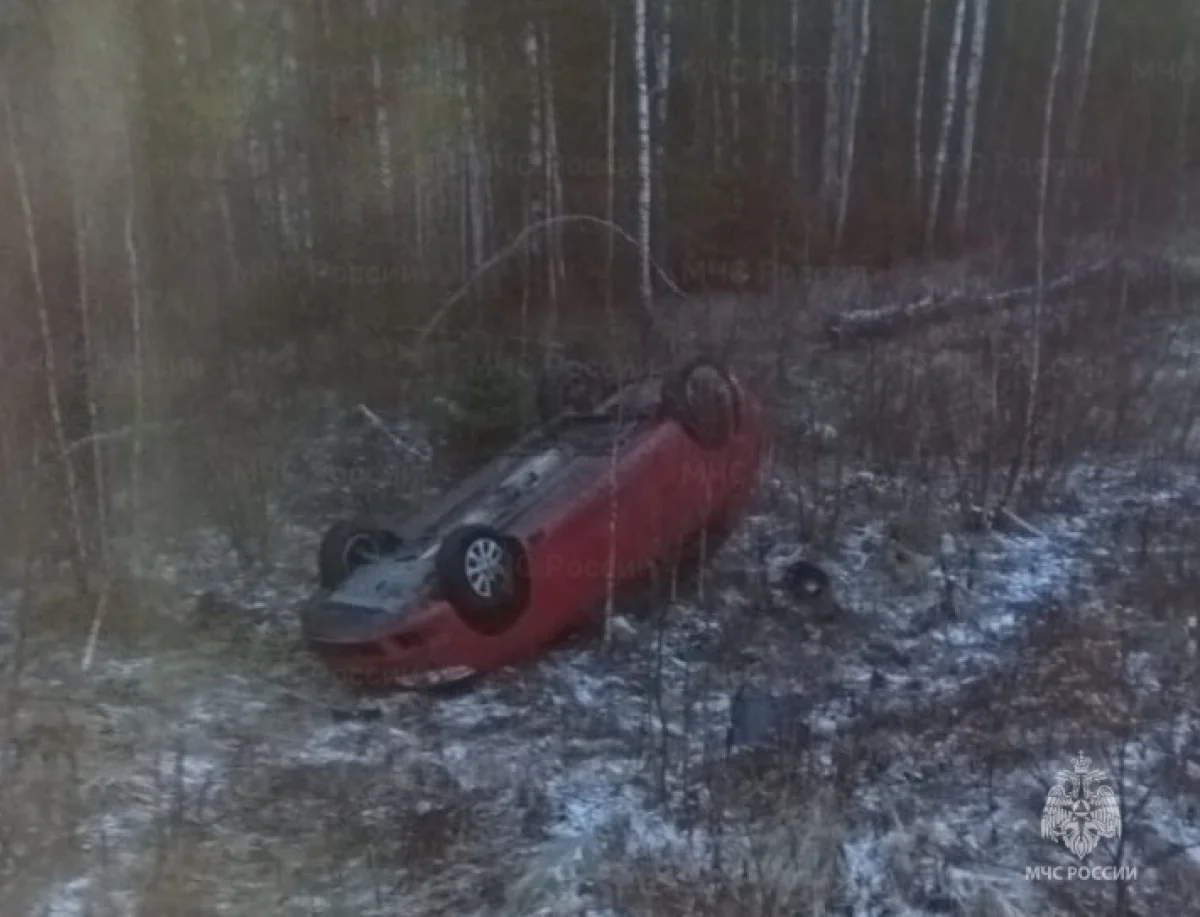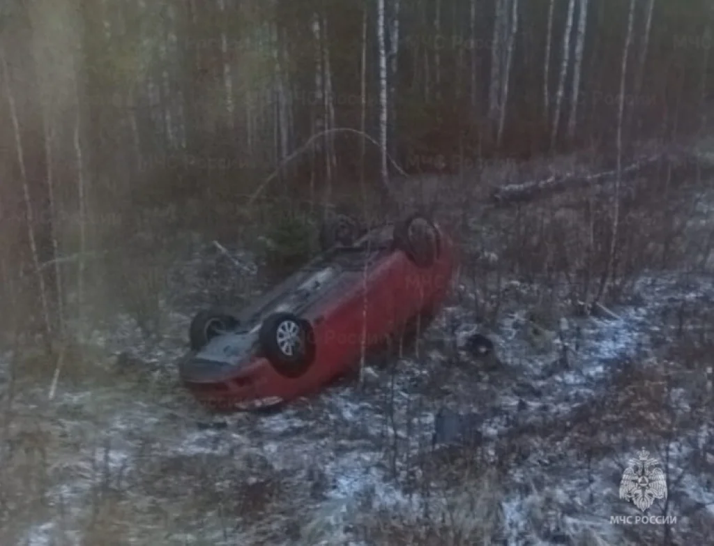 По предварительной информации, водитель легковушки не справился с управлением у села Щелканово Юхновского района. Машина съехала в кювет и оказалась на крыше.