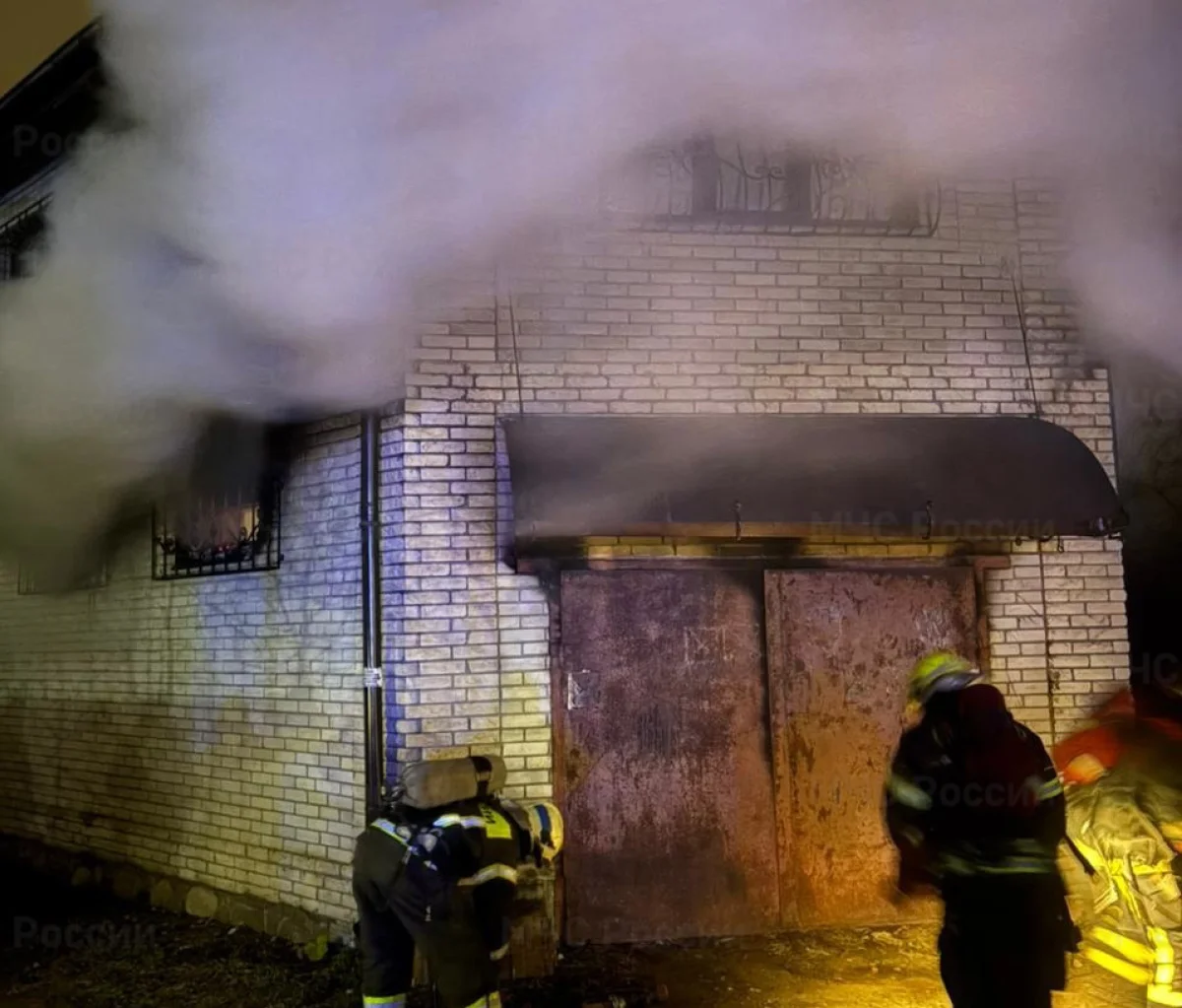 По предварительным данным, автомобиль, который стоял внутри помещения, загорелся около 2 часов ночи.