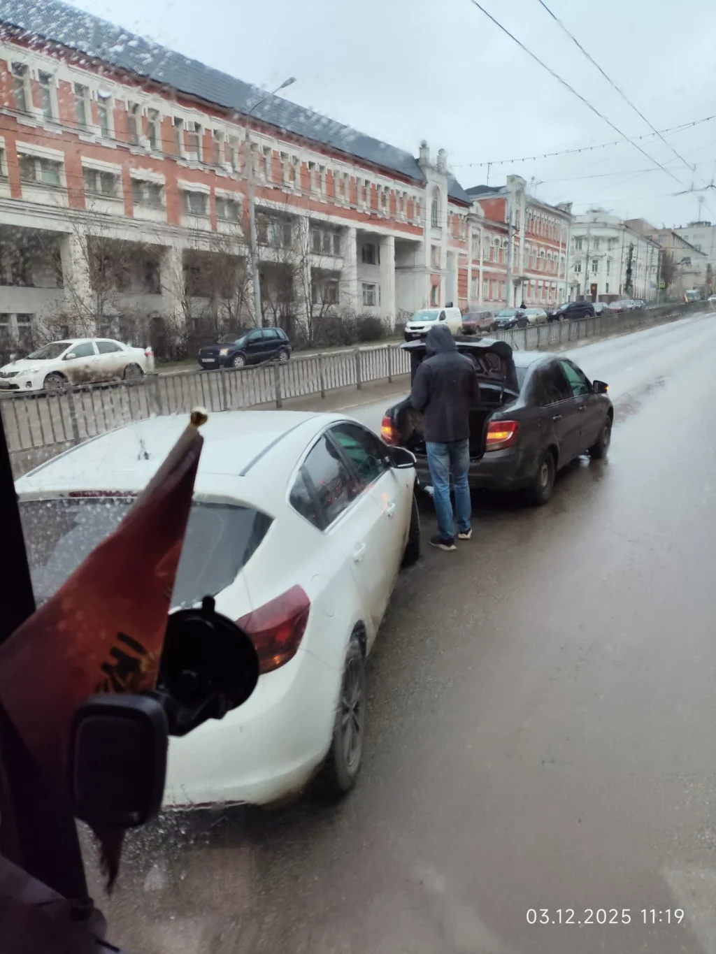 По предварительным данным, в районе школы №6 в средней полосе столкнулись два легковых автомобиля, двигавшихся со стороны Правого берега. Фото опубликовали в сообществе «Калуга ДТП».
