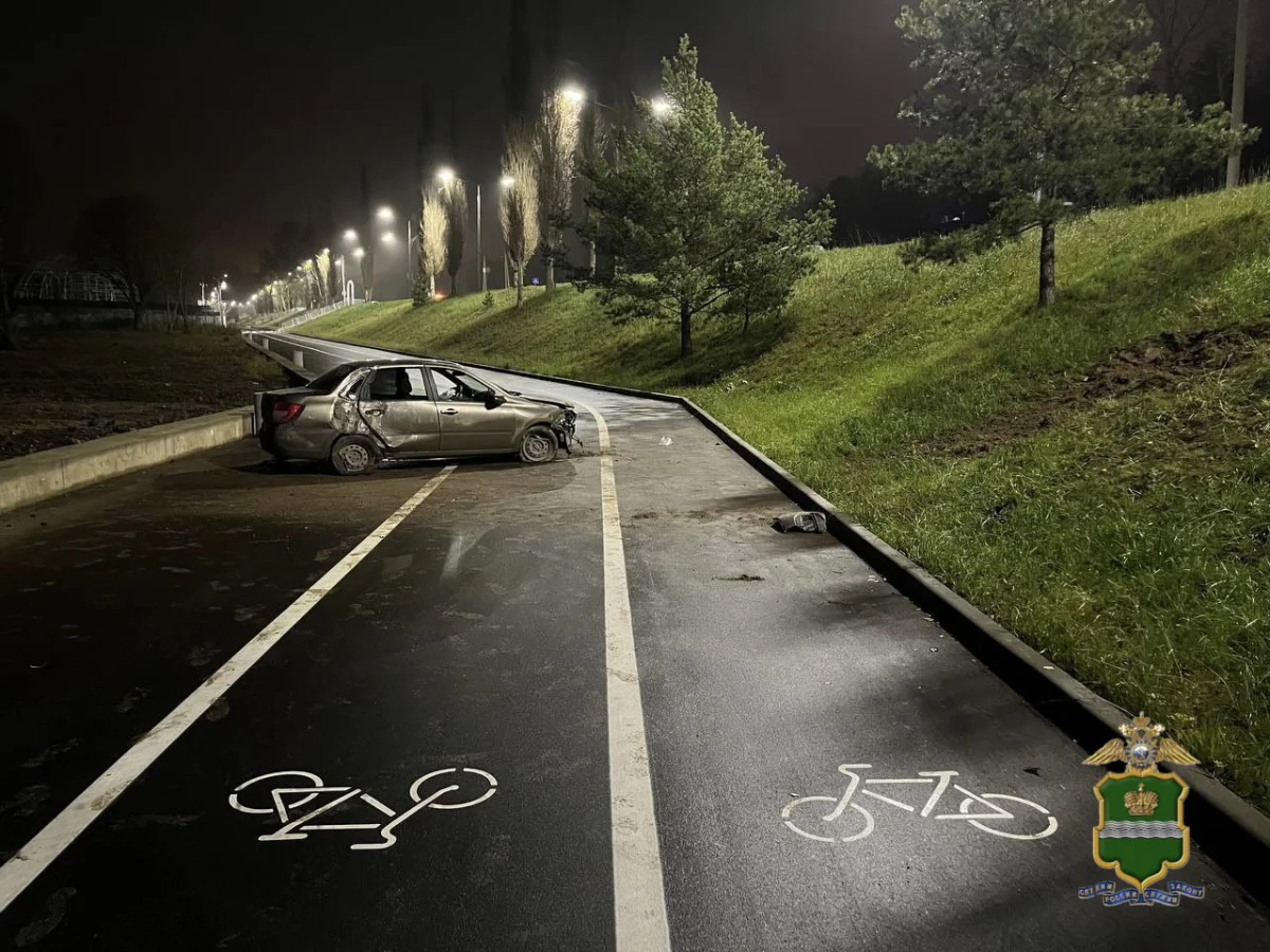 По предварительным данным, 19-летний водитель «Гранты» не справился с управлением и снес металлическое ограждение. Машина съехала с горки, перевернулась и попала на велосипедную дорожку.