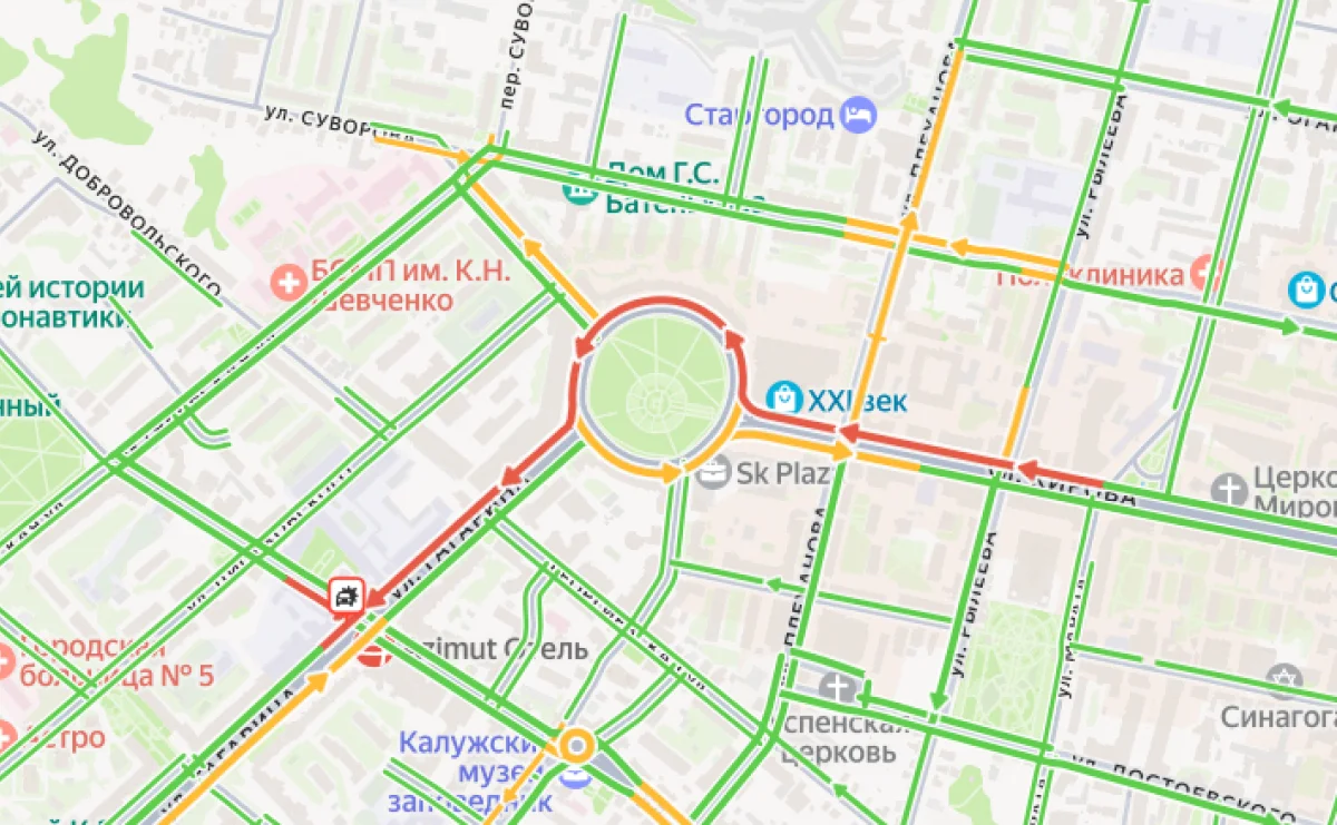Пробка по Гагарина, скверу Мира и улице Кирова растянулась уже почти до Театральной площади.