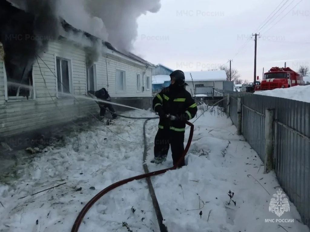 Около 16:00 там загорелся жилой дом, разделённый на две квартиры.