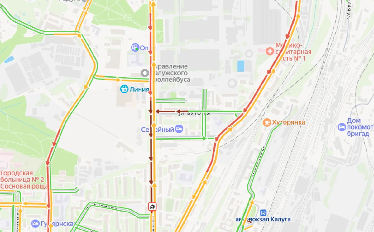 Пробка в сторону центра города растянулась уже на полтора километра.