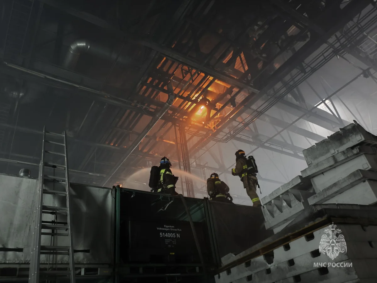 Опубликовано видео изнутри горящего автомобильного завода в Калуге