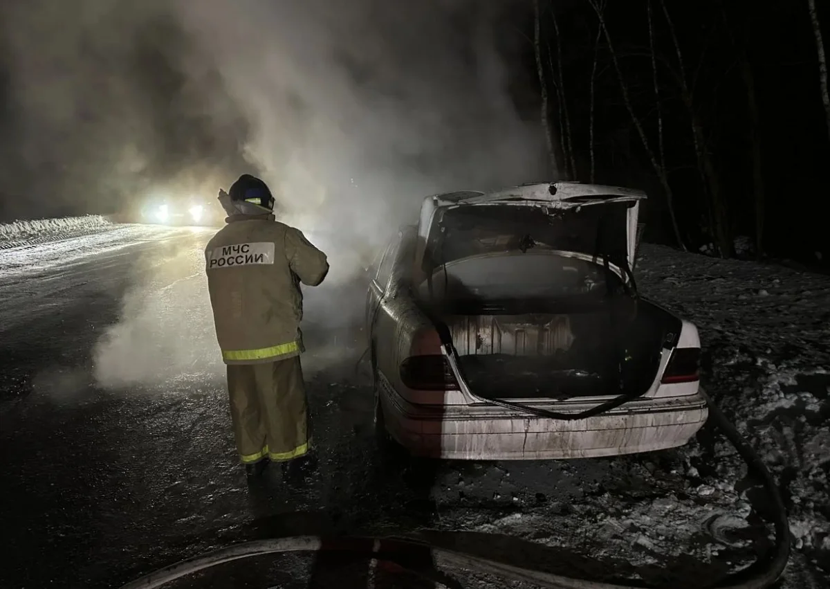 Недалеко от развилки дорог на Козельск и Белев загорелся легковой автомобиль.