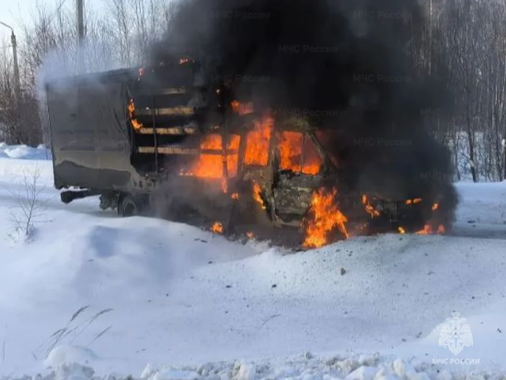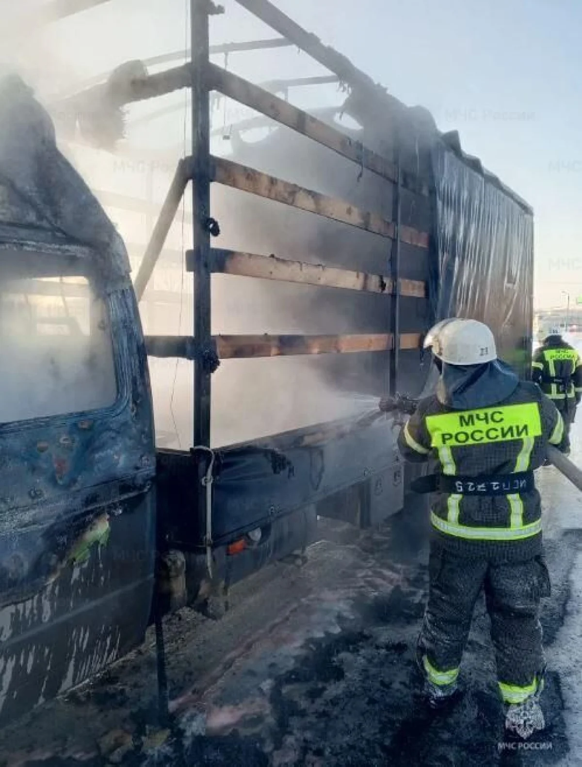 Кабина грузовика полностью выгорела.