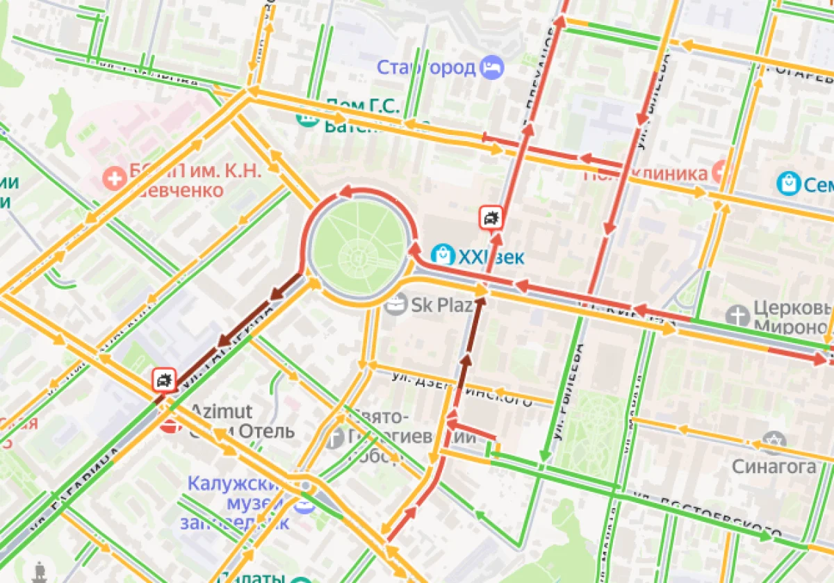 Пробка образовалась на улице Гагарина, сквере Мира и улице Кирова – до перекрёстка с улицей Герцена.