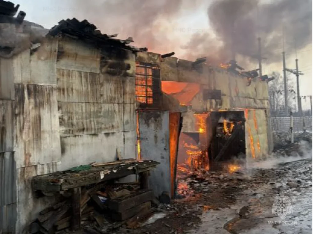 Здание гаража выгорело, но никто из людей не пострадал.
