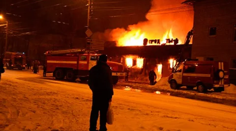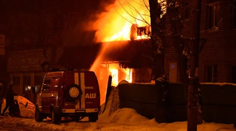 Соседние здания от огня не пострадали. Пока спасатели не называют предварительную версию причин пожара, работы на месте происшествия продолжаются.