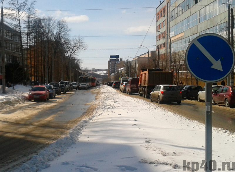 Автомобили, двигающиеся со стороны Правого берега, пытаются объехать затор по улицам Георгиевской, Королева и Комарова.