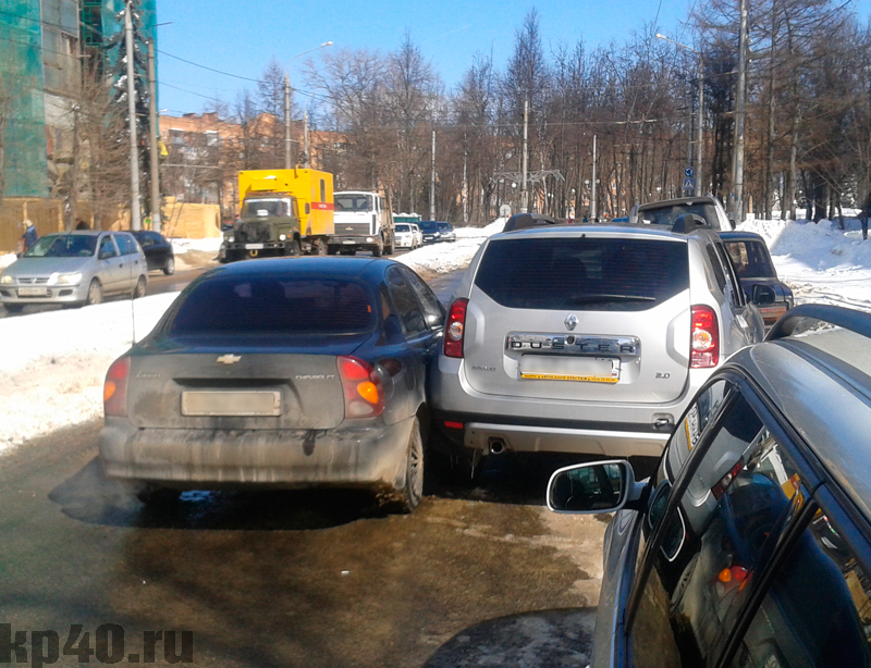 Примерно в 13 часов на улице Гагарина в Калуге недалеко от площади Мира столкнулись две иномарки - «Шевроле» и «Рено» «притерлись» боками. Из-за этой аварии в настоящий момент перекрыт проезд по улице Гагарина в сторону центра.
