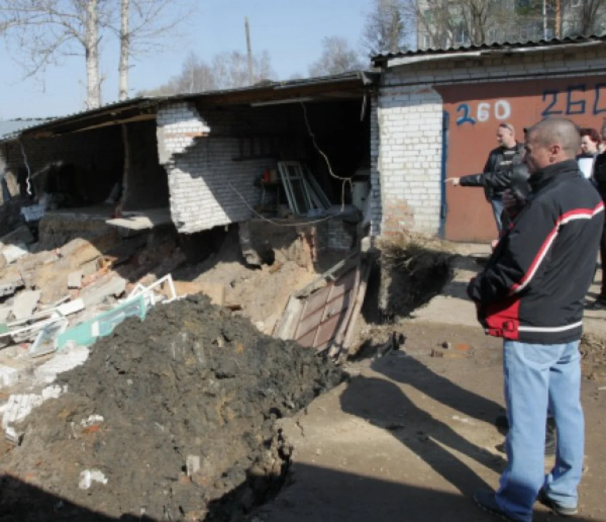 Гаражи в Калуге обвалились из-за неисправной ливневки
