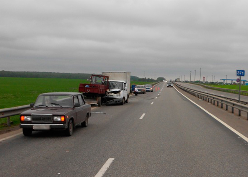 Сначала около 17:00 автофургон ГАЗ «догнал» трактор Т-16МГ на 146 километре трассы М3 «Украина». Пострадали водители обоих транспортных средств и пассажир автофургона. Травм, угрожающих жизни, никто не получил.