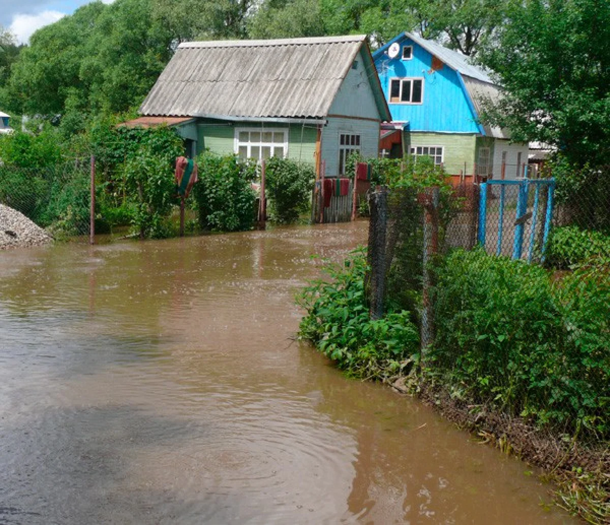 Дача Светланы Романовой стоит в низине. Первый этаж сейчас затоплен полностью, погибли все посадки и цветы. Парники затопило и разметало на всех затопленных участках. Улицы превратились в реку.
