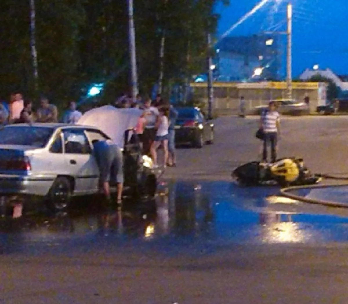 В нескольких десятках метров от мест этих аварий водитель Daewoo Nexia около 23:00 поворачивал налево и не пропустил ехавшего навстречу по краю проезжей части мотоциклиста на Suzuki GSX-R 750 (на фото вверху). Пострадали оба водителя: у байкера, который ехал в защитном костюме и мотошлеме, перелом руки и ушибы, у автомобилиста - только ушибы.