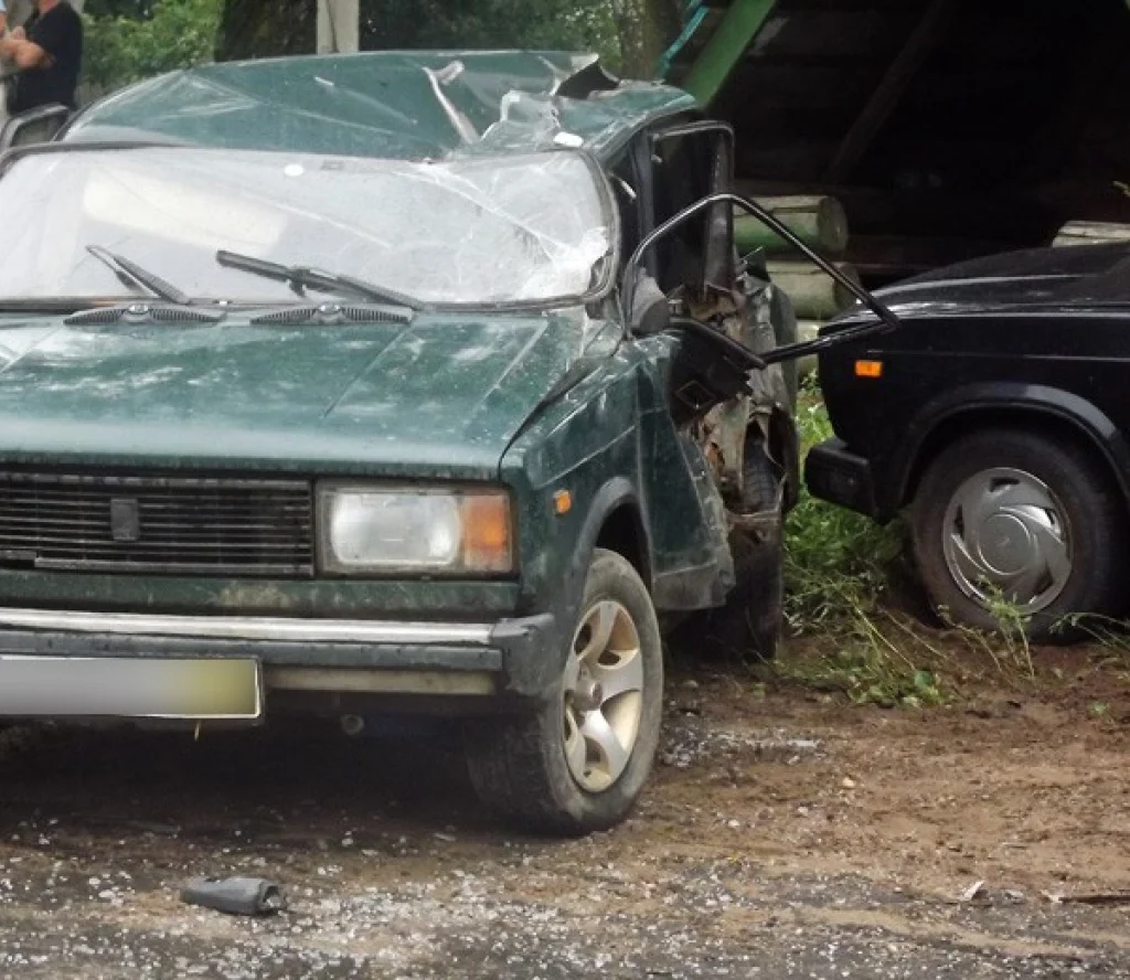 ВАЗ 21053 после столкновения с полуприцепом ТОНАР на дороге