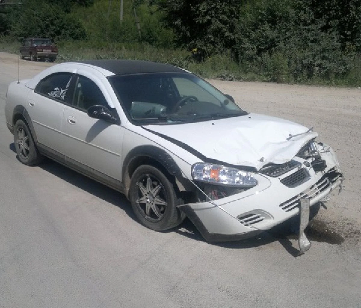 Dodge Stratus после столкновения с КАМАЗом в районе деревни Жилетово.