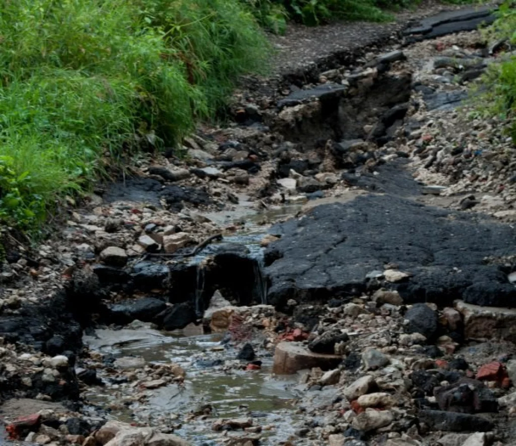 В ночь на понедельник, 15 июля, в Калуге дорогу к жилым домам на улице Багговута, 3 размыло так, что асфальта на ней почти не осталось.