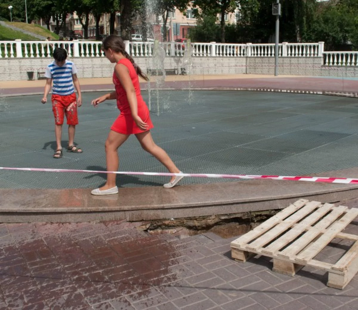 Сейчас фонтан огорожен лентой, купаться в нем пока нельзя.