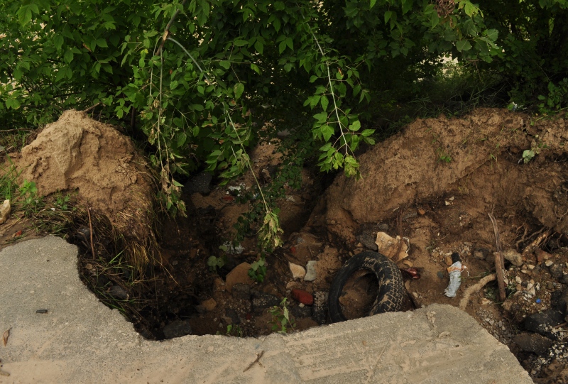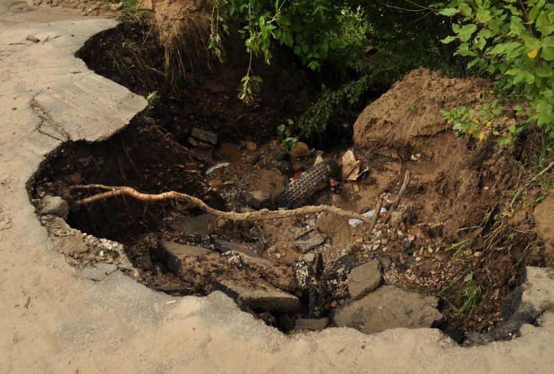 - Вчера, 23 июля, решили с другом погулять, - написал он. - Зашли на переулок Совхозный, потом вышли через лес на дорогу, ведущую на Яченское водохранилище. Все было хорошо, пока не начали образовываться маленькие обвалы. Мы не придавали значения, пока почти не дошли до переулка Чичерина. Там была огромная яма, затронувшая дорожный проезд.