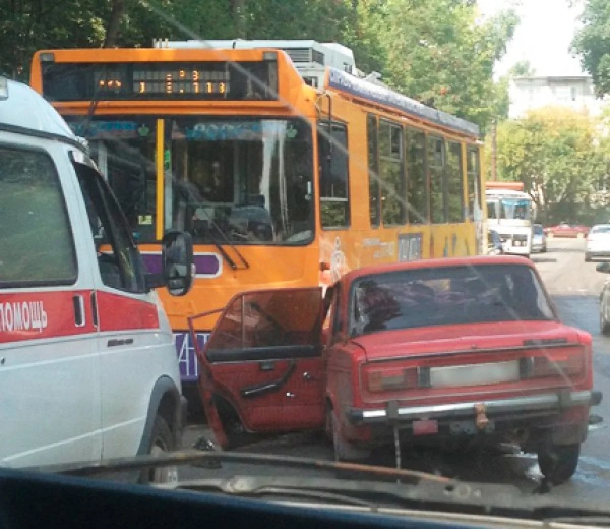 - Ужасная авария троллейбуса и «Жигули», - написала в Twitter очевидец происшествия @queen_tanny. - «Жигули» всмятку.