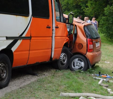 Микроавтобус протаранил легковушку.