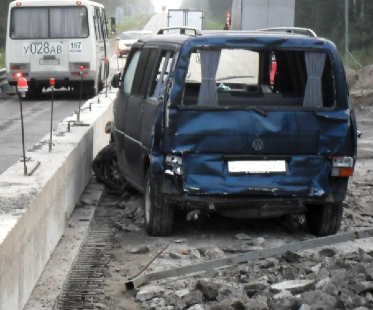 В ночь на понедельник, 2 сентября, на трассе М3 «Украина» в Жиздринском районе фура Volvo, ехавшая в сторону Москвы, врезалась в стоящий Volkswagen Transporter (на фото вверху). В аварии пострадала 53-летняя пассажирка микроавтобуса. Она доставлена в больницу с переломом правой лучевой кости, ушибами бедра и голени.