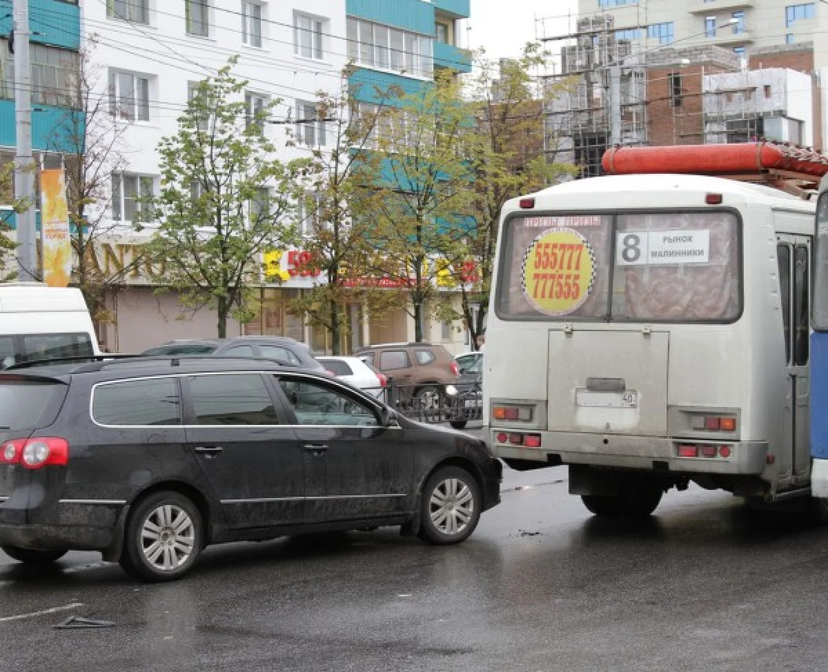 «Пазик», следовавший по 8 маршруту, зацепила легковая машина «Фольксваген». Авария произошла около остановки в районе рынка в сторону выезда из Калуги. Автомобили столкнулись так неудачно, что перегородили почти всю проезжую часть.