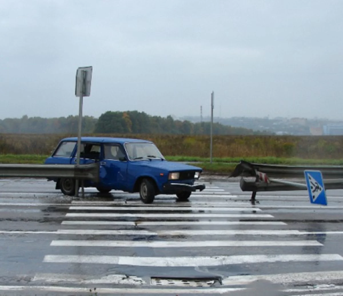 Водитель «четверки» опережал грузовик и перестроился в левую полосу. В этот момент фургон, который ехал впереди по левой полосе, резко затормозил. Водитель «четверки» попытался затормозить и потерял управление. Автомобиль занесло и выбросило на разделительный парапет и пешеходный переход, который находится в разрыве ограждения. Там стоял отец с девочкой. Мужчина с ребенком отделались ушибами.