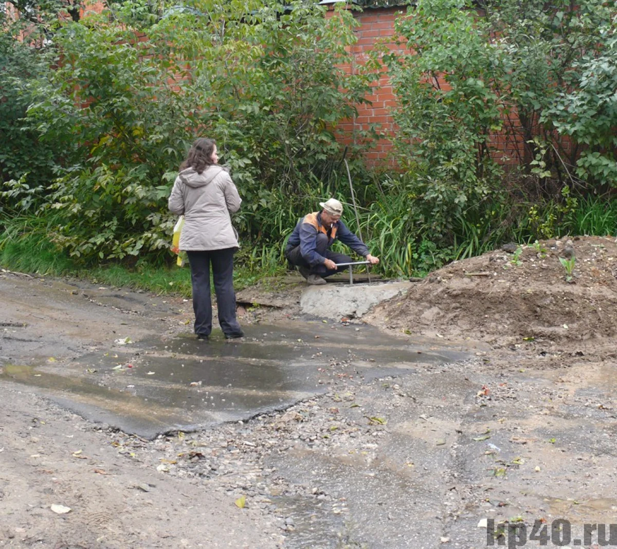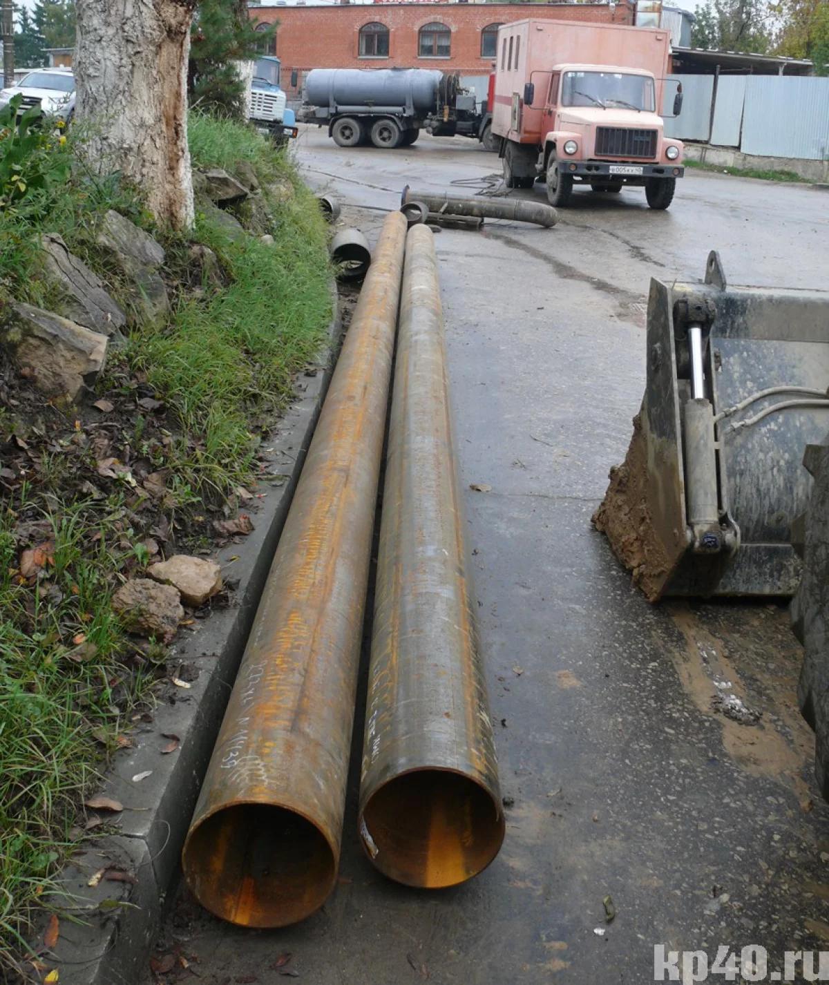 А вот чуть поодаль от места понедельничного ЧП водоканал, то ли воспользовавшись случаем, то ли планово, приступил к ремонту водопровода. Там меняют старую задвижку на новую.